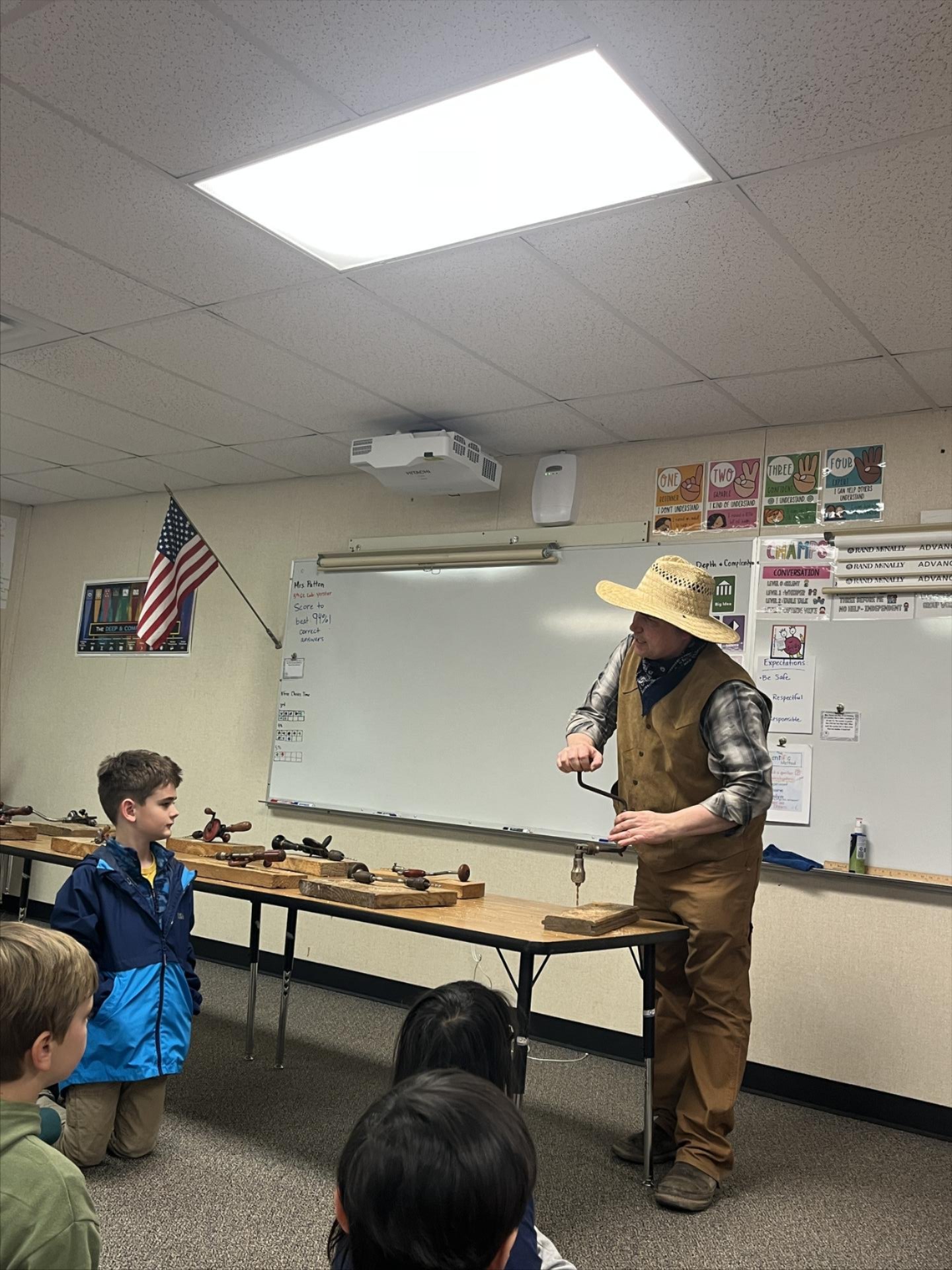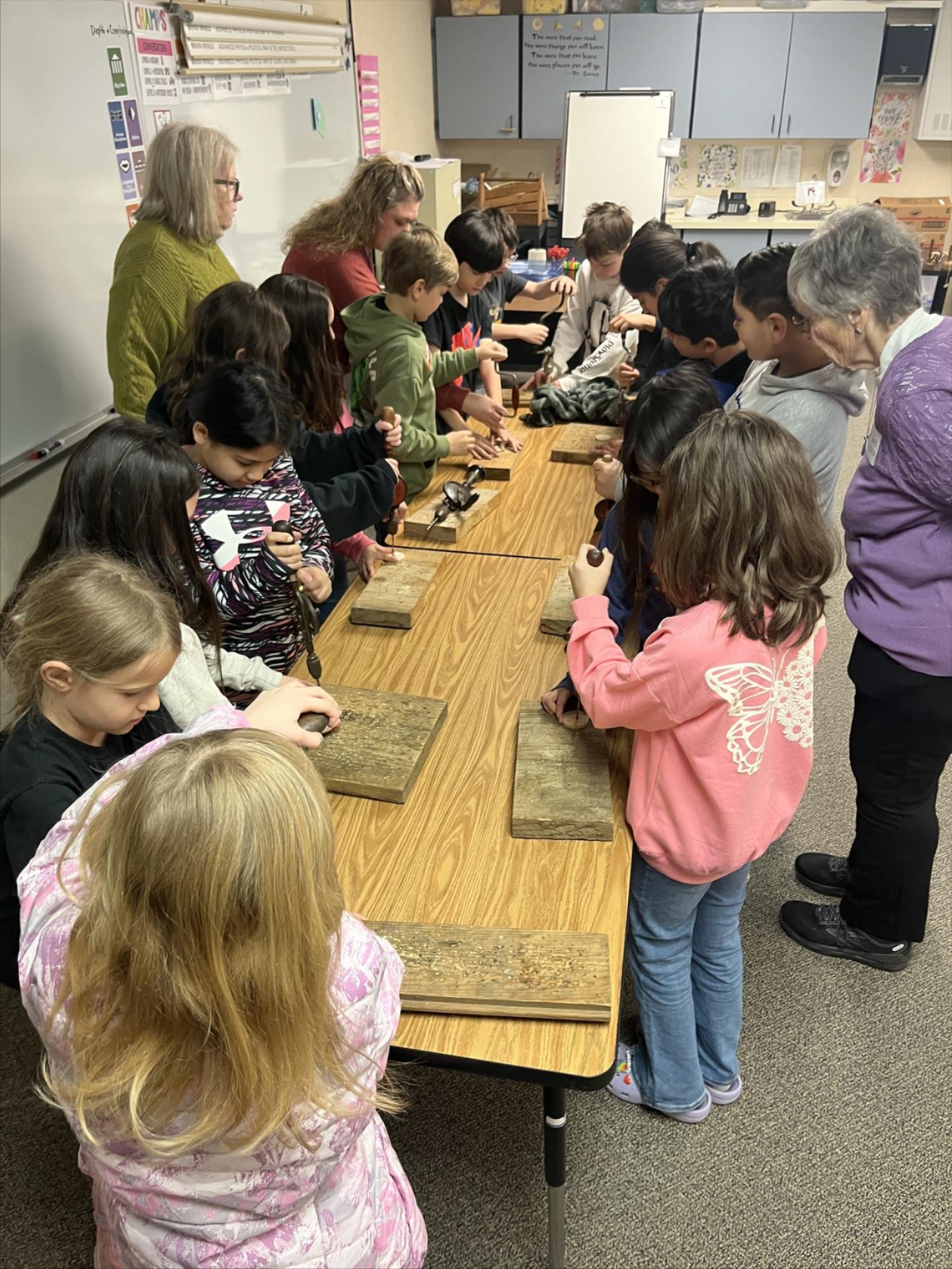 The Centennial Craft Program: 3rd grade students went with their classrooms to hear folk lore while handcrafting a personal keepsake. |