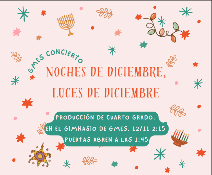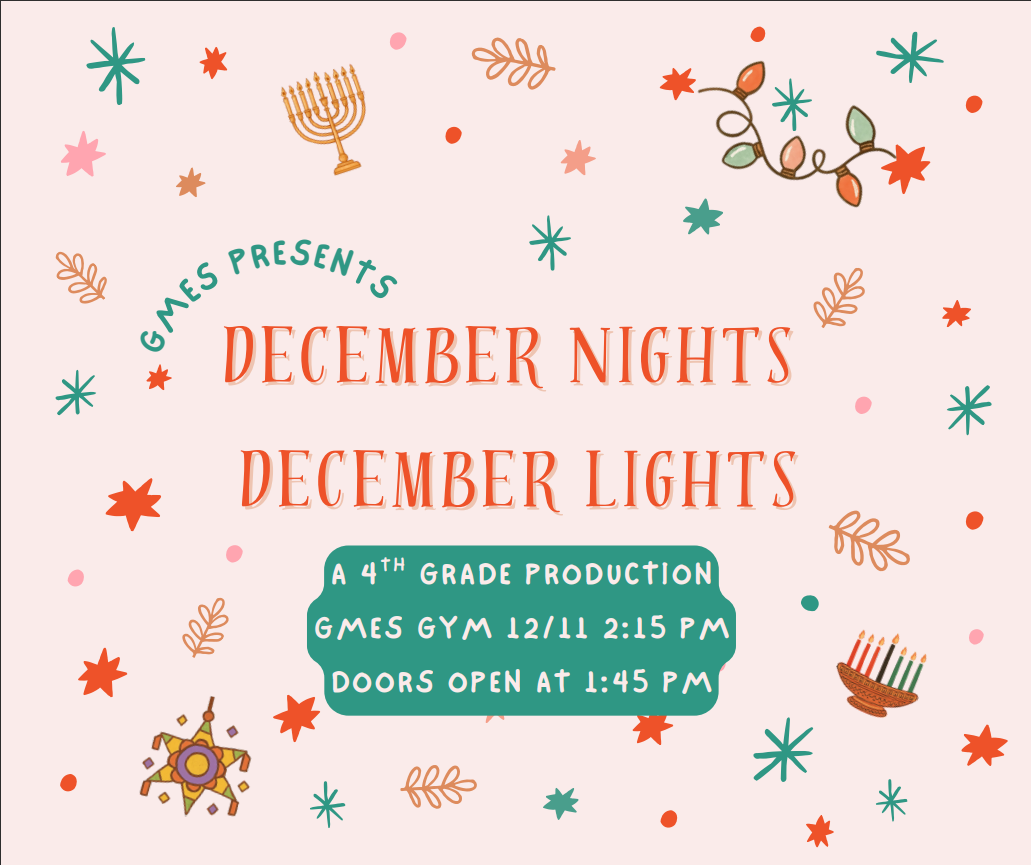- December 11- 4th grade performance Winter Concert @ 2:15pm