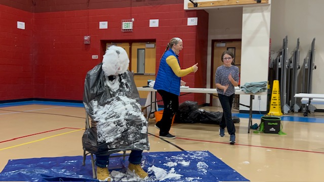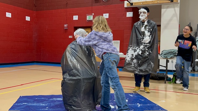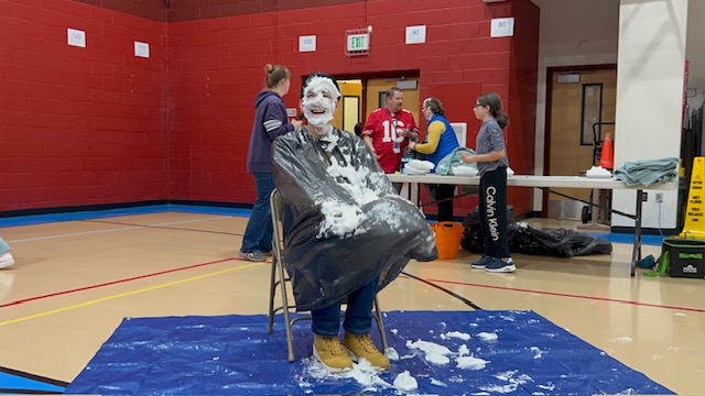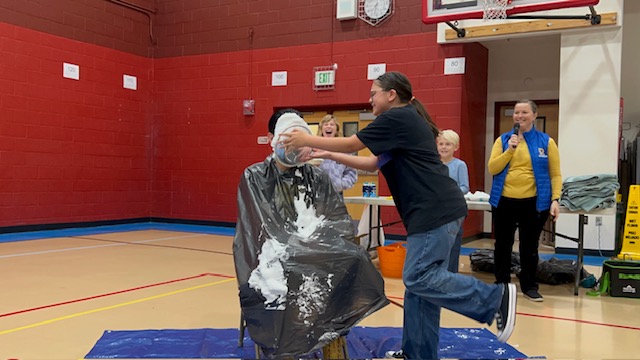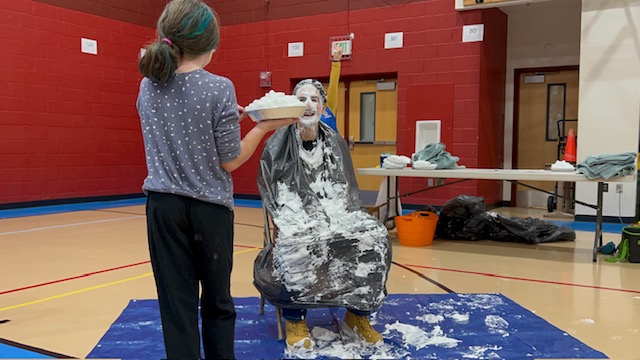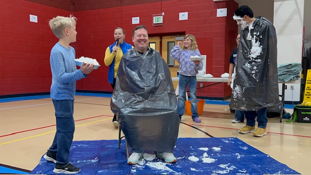 Congratulations to the top three fundraisers in each grade level -- they got to pie a staff member of their choice in the face! Poor Mr. Aragon got 4 pies to the face.... and hair!!